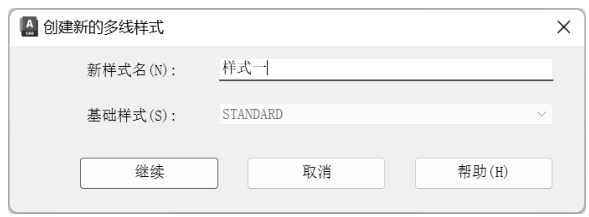 按钮,在打开的“创建新的多线样式”对话框中输入新样式的名称,如图3-13所示。