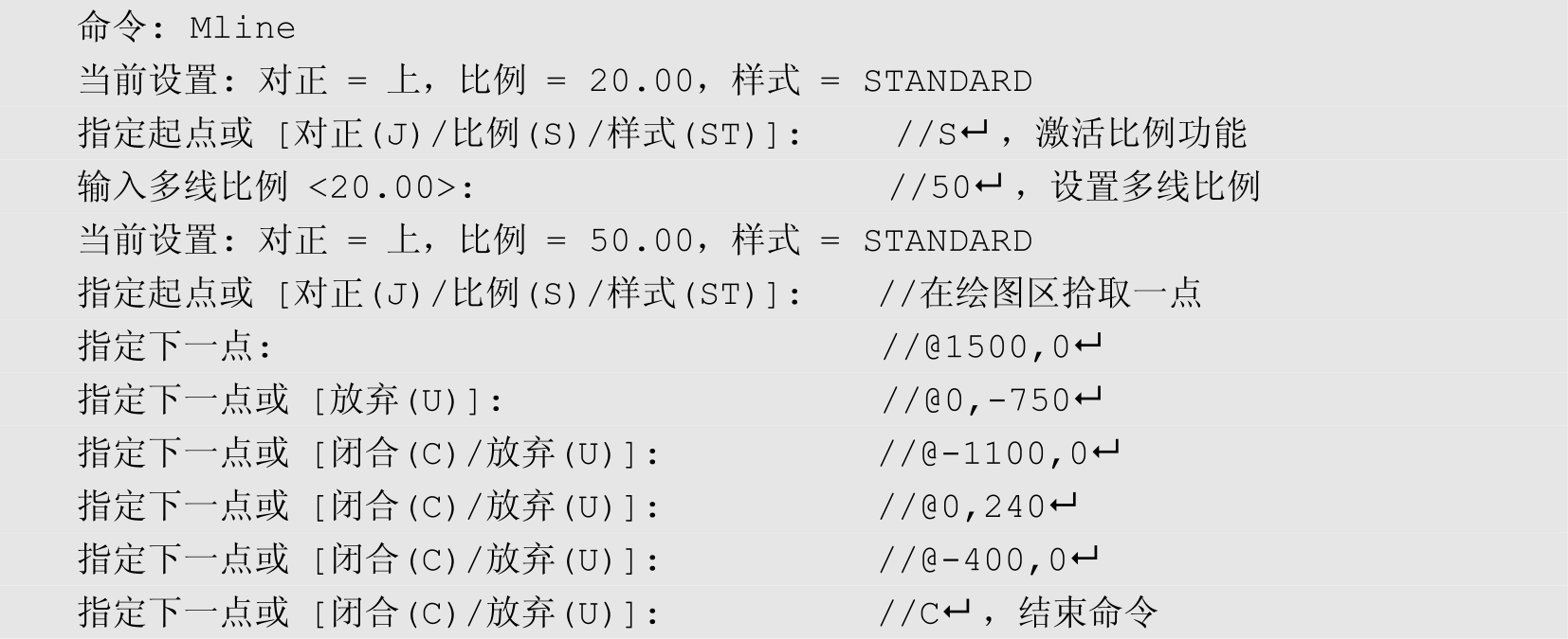 ✧ 在命令行输入Mline后按↵键。