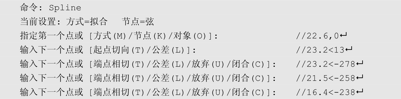 下面通过典型实例来学习“样条曲线”命令的使用方法和技巧,具体操作步骤如下。