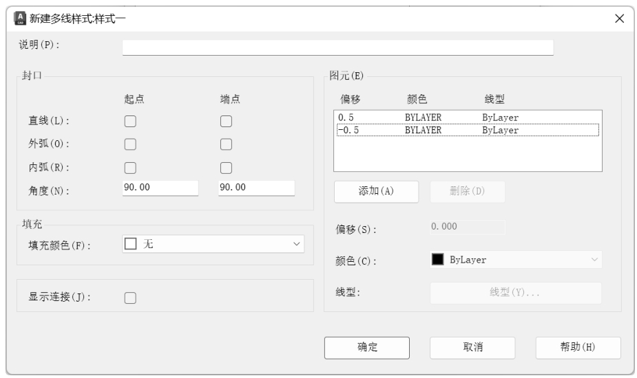 图3-14 “新建多线样式:样式一”对话框