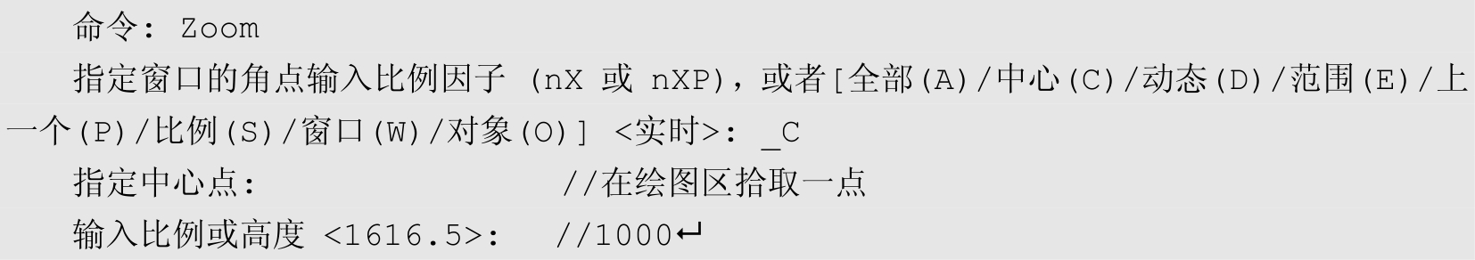 执行菜单栏“视图”→“缩放”→“中心”命令,将视图高度调整为1000个绘图单位,命令行操作如下。