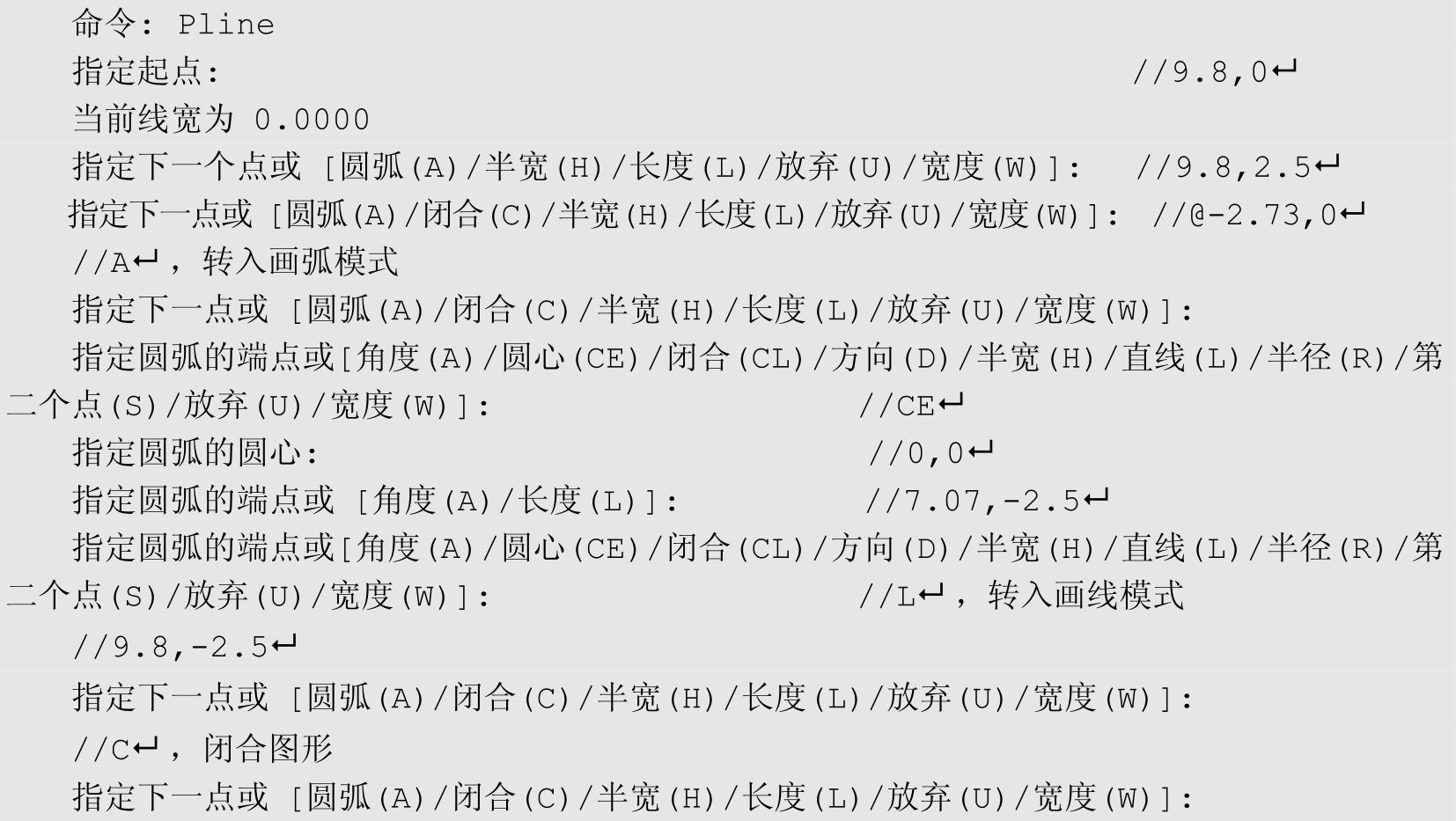 ✧ 在命令行输入Pline后按↵键。