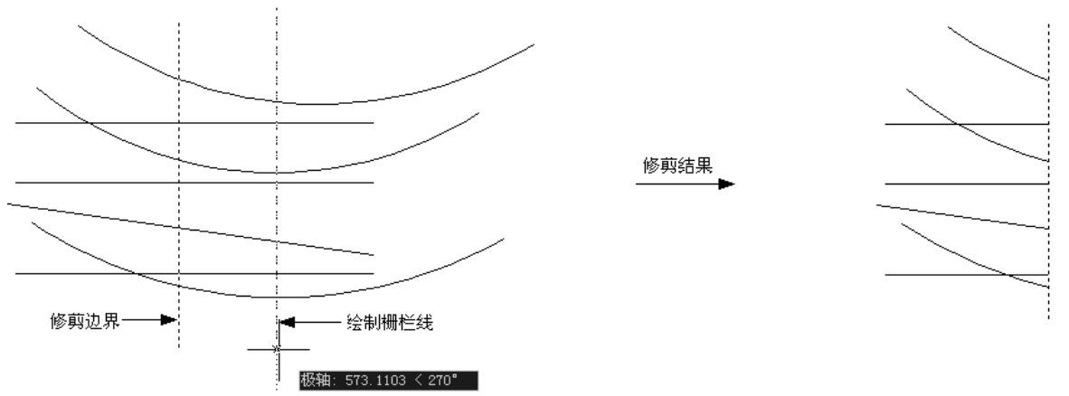 当系统提示“选择剪切边”时,直接按↵键即可选择待修剪的对象,系统在修剪对象时将最靠近的候选对象作为剪切边。