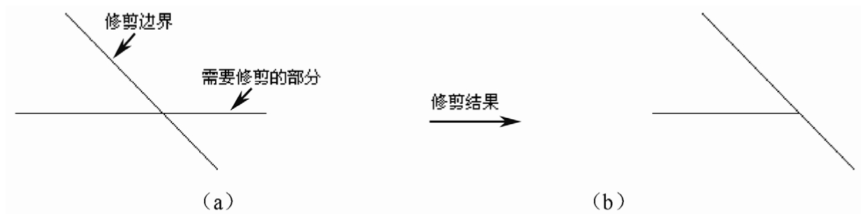 “修剪”命令用于修剪掉对象上指定的部分,不过在修剪时,需要事先指定一个边界,如图4-1所示。