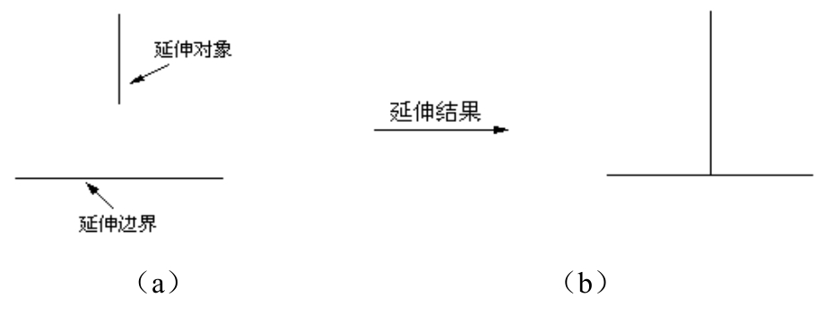 “延伸”命令用于将图线延长至事先指定的边界上,如图4-7所示。可用于延伸的对象有直线、圆弧、椭圆弧、非闭合的二维多段线和三维多段线及射线等。