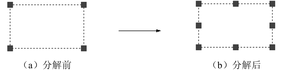 常用于分解的组合对象有矩形、正多边形、多段线、边界及一些图块等。例如,矩形是由4条直线元素组成的单个对象,如果用户需要对其中的一条边进行编辑,则应先将矩形分解为4条线对象,如图4-77所示。
