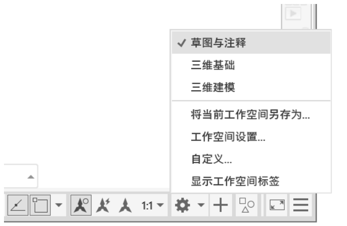 由于 AutoCAD 为用户提供了多种工作空间,因此读者可以根据自己的作图需要切换工作空间,切换方式有以下几种。