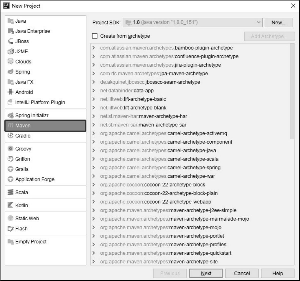 (1)打开IntelliJ IDEA,创建一个Maven工程,如图2-1所示。