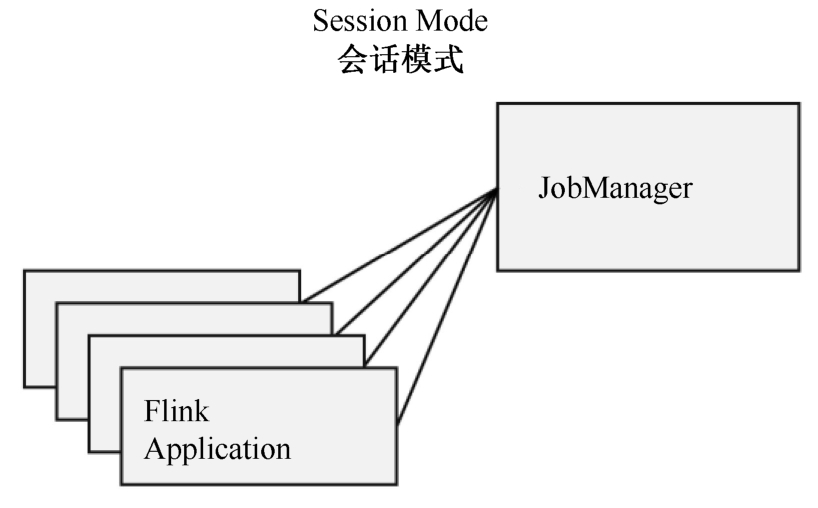 这样的好处很明显,我们只需要一个集群,就像一个大箱子,所有的作业提交之后都塞进去;集群的生命周期是超越于作业的,作业结束了就释放资源,集群依然正常运行。当然缺点也是显而易见的:因为资源是共享的,所以资源不够了,提交新的作业就会失败。另外,同一个TaskManager上可能运行了很多作业,如果其中一个发生故障导致TaskManager宕机,那么所有作业都会受到影响。