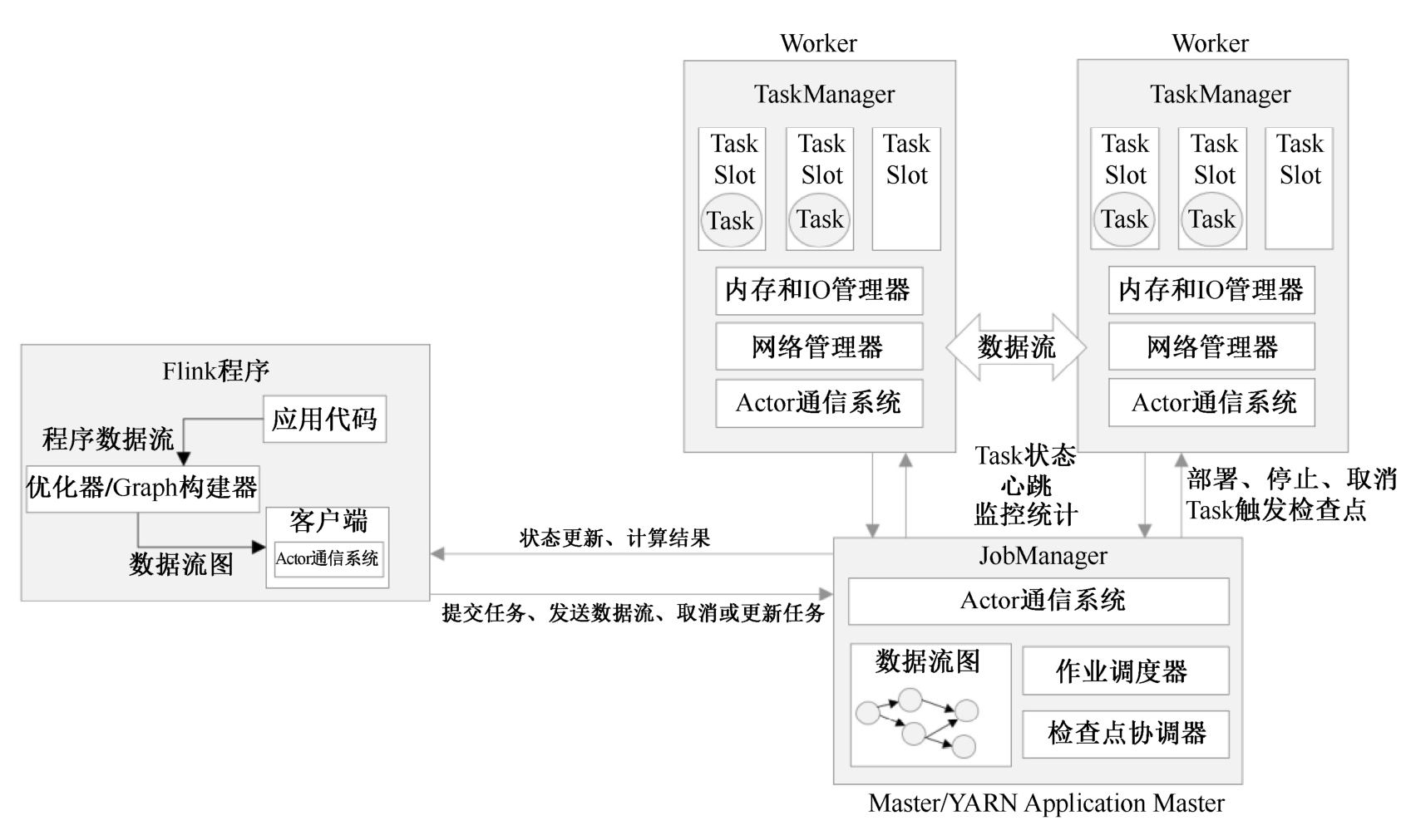 图4-1 Flink的作业提交和任务处理时的系统
