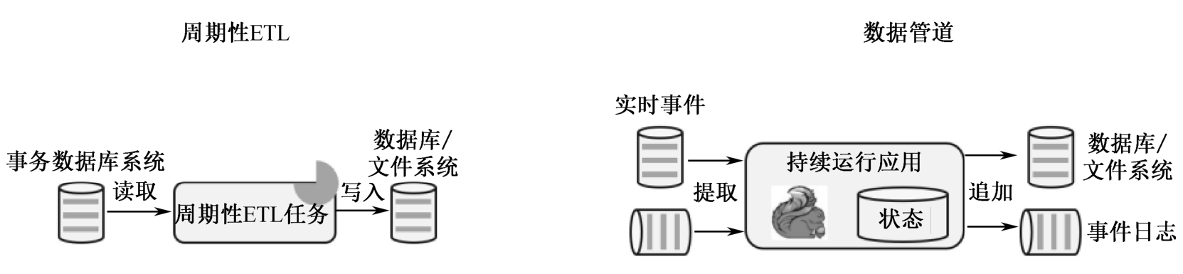 周期性ETL与数据管道的区别如图1-9所示。