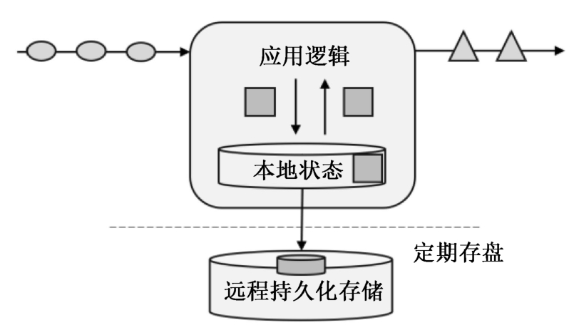 因为采用的是一个分布式系统,所以还需要保护本地状态,防止发生故障时丢失数据。我们可以定期地将应用状态的一致性检查点存盘,写入远程持久化存储中,遇到故障时再去读取而进行恢复,保证更好的容错性。
