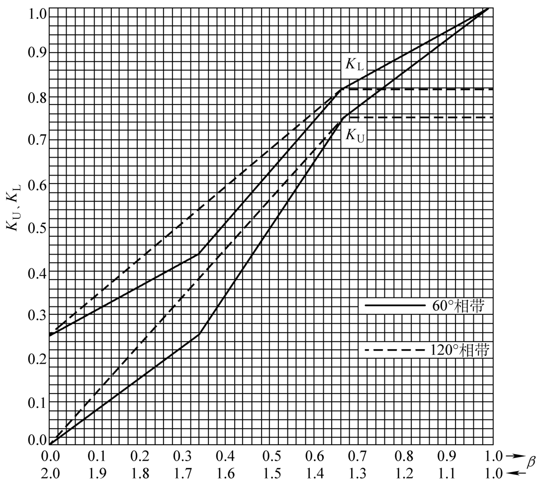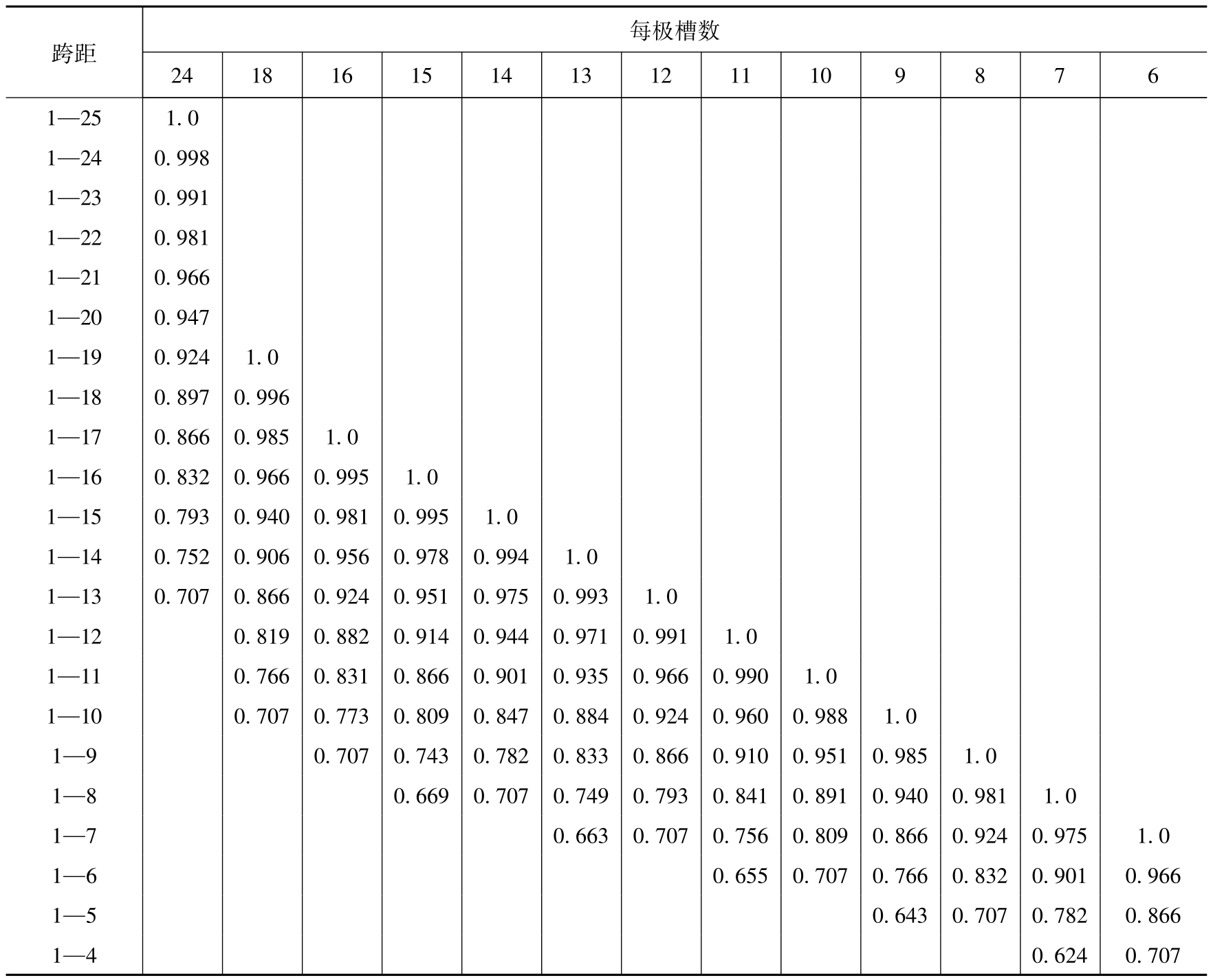 表2A-3 三相60°相带常用节距漏抗系数 K U 、 K L