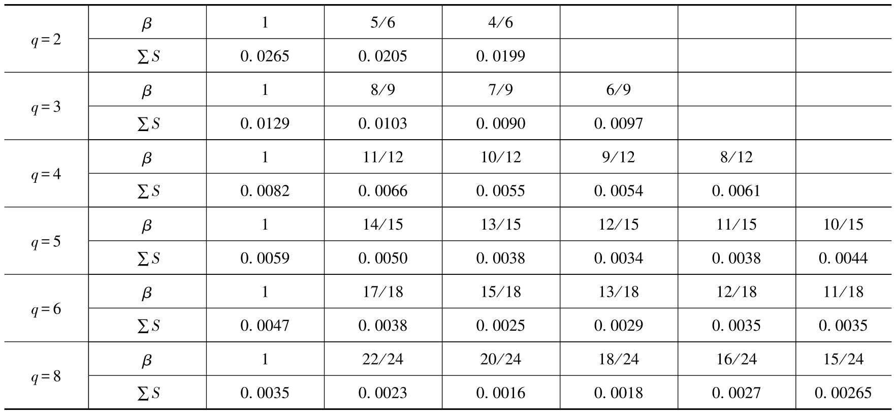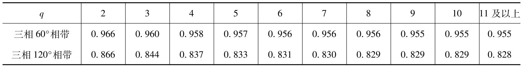 表2A-4 三相60°相带谐波单位漏磁导 ∑ S