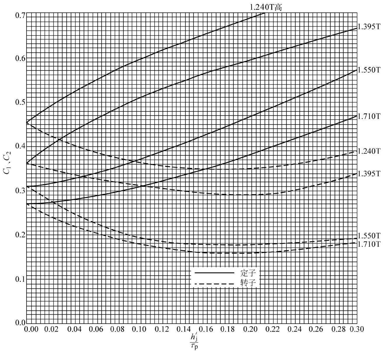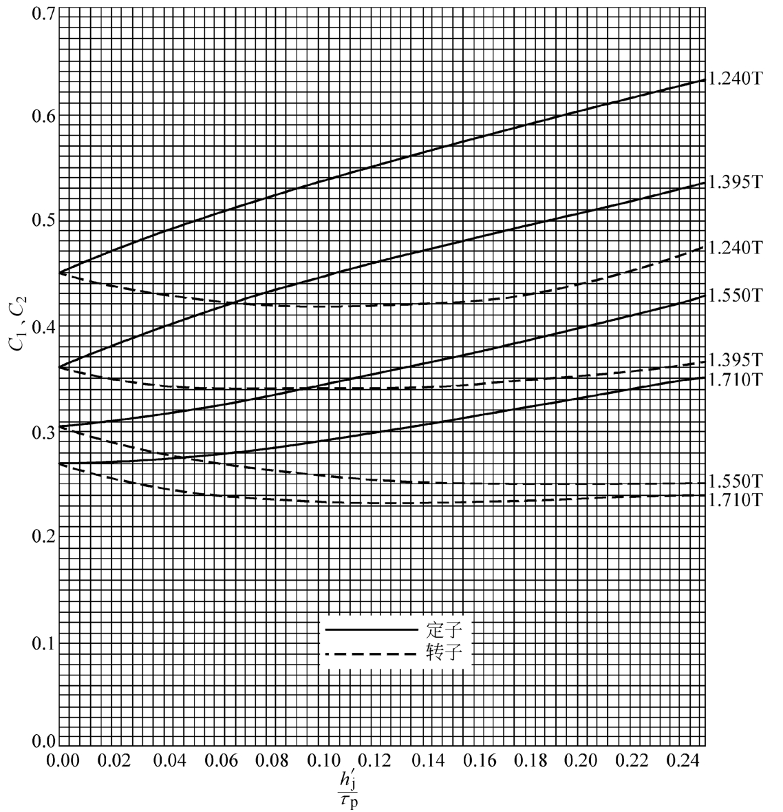 图2C-4 轭部磁路校正系数 C 1 、 C 2 (6极及以上)