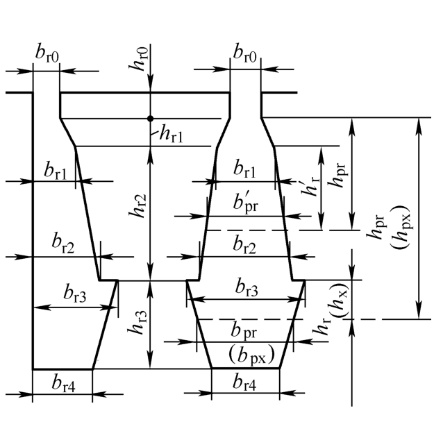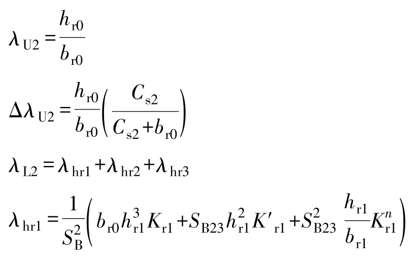 用 b px 代替 b r4 ,用[ h x = h px -( h r1 + h r2 )]代替 h r3 ,按 λ L2 的公式重新计算,即得 λ L2(st) 。