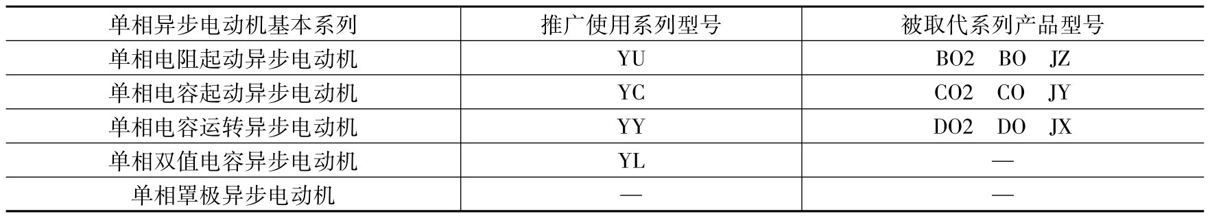 表3-2 单相异步电动机基本系列及推广使用系列型号
