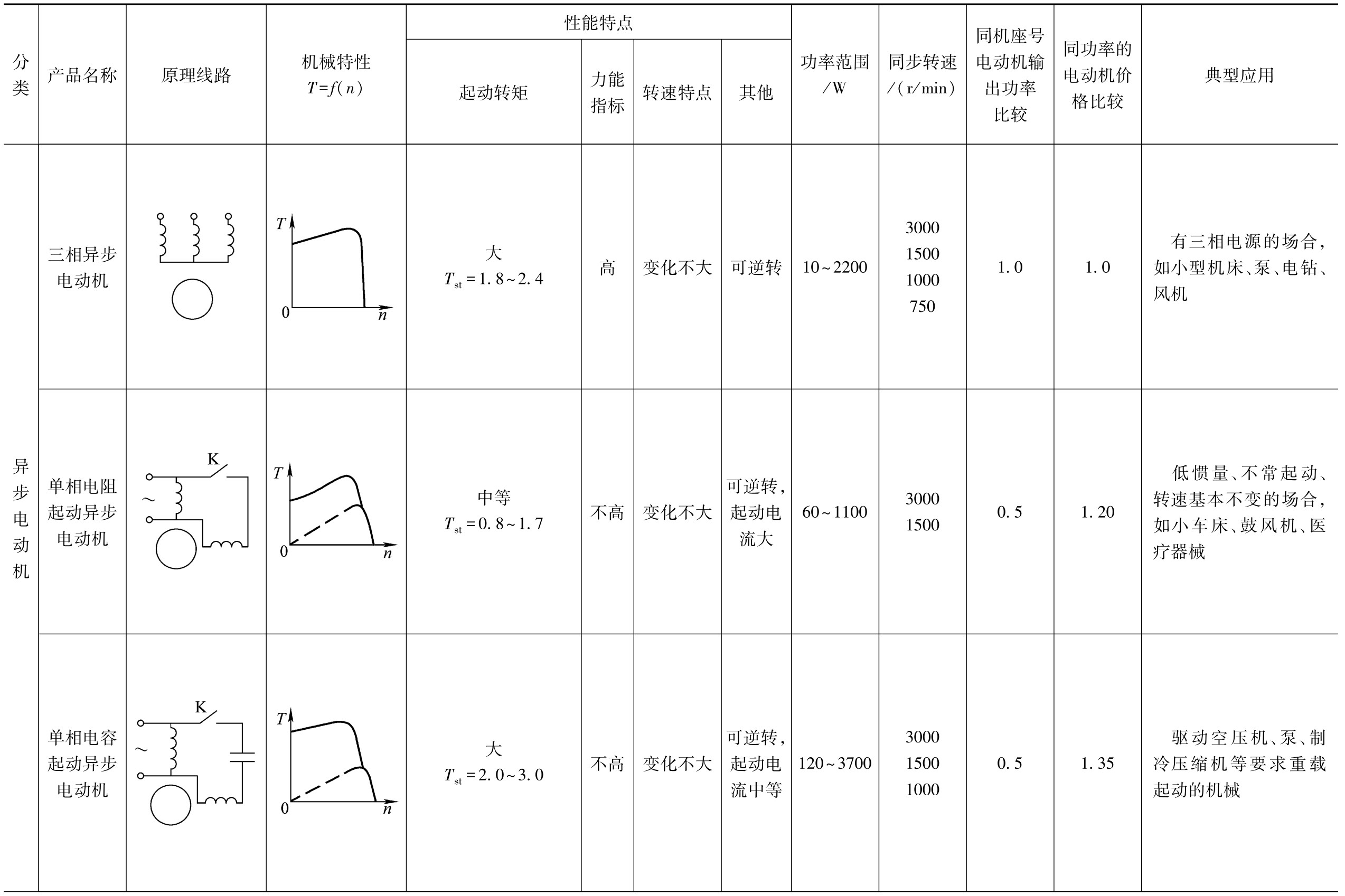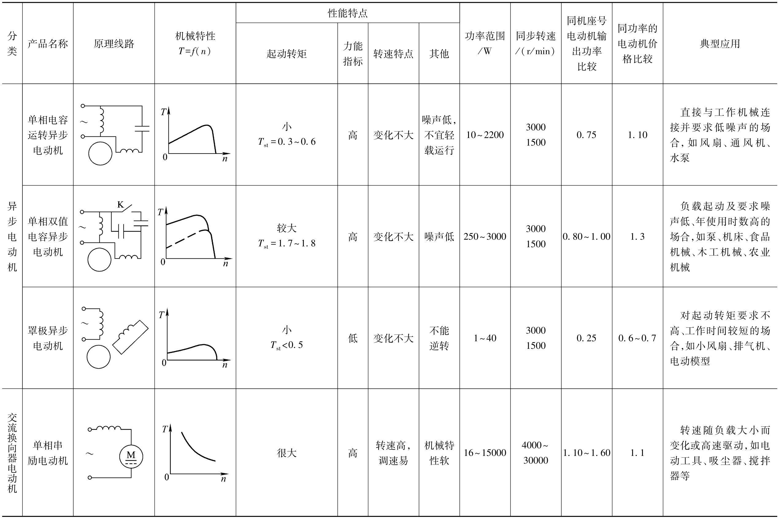 表3-1 主要类型的小功率电动机性能特点及其典型应用