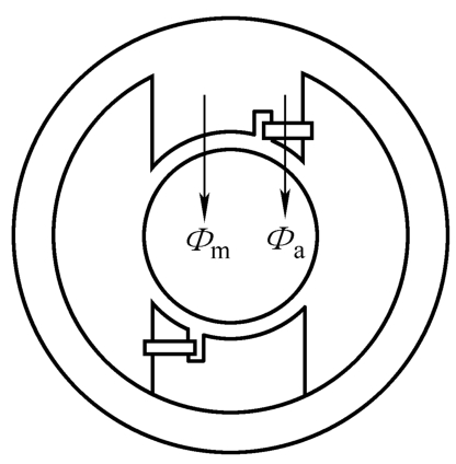 5.单相罩极式异步电动机 单相罩极式异步电动机分为凸极罩极式(见图3-5)和隐极罩极式两种,其工作原理完全相同。