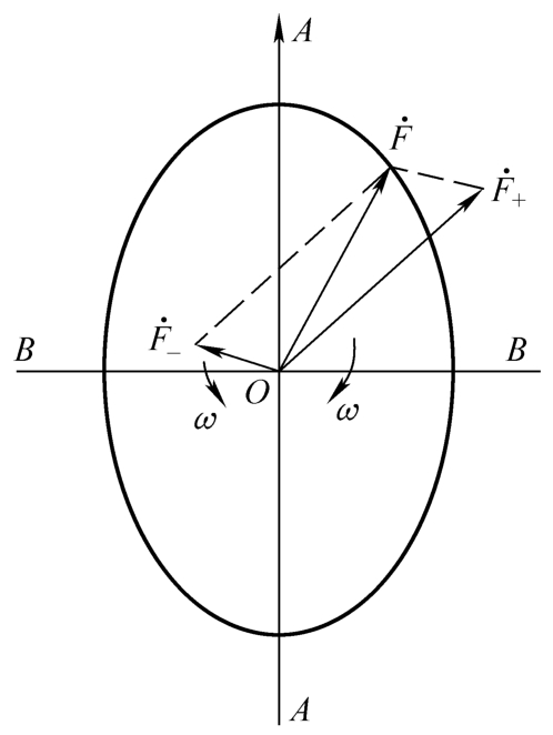 这两个幅值不同的圆形旋转磁动势的合成磁动势的轨迹为一椭圆,如图3-11所示,因此这是一个椭圆形旋转磁动势。