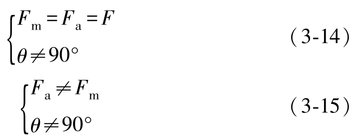 (2)两相绕组不对称运行时的谐波磁动势 两相不对称运行有下面三种情况:①磁动势谐波的幅值不等,即 F m1 ≠ F a1 , F m3 ≠ F a3 ,…;②电流之间相位差不为90°,即 θ ≠90°;③磁动势幅值既不相等,电流之间相位差也不是90°。然而,无论哪种不对称运行情况,总是表现为电动机中两相合成的磁动势为椭圆形旋转磁动势。为了简化分析,这里我们以第一种情况为例进行讨论,但所得结论能适用另外两种情况。