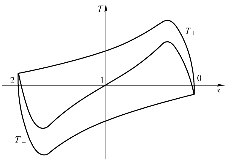 根据这个重要概念,正序旋转磁场和负序旋转磁场分别切割转子导体,并分别在转子中感应出电动势和电流。正序旋转磁场产生的转矩 T + 使转子顺着正序旋转磁场方向旋转,而负序旋转磁场产生的转矩 T - 使转子顺着负序旋转磁场方向旋转,因此正、负序转矩 T + 和 T - 的方向是相反的。正、负序转矩与转差率的关系如图3-9所示。