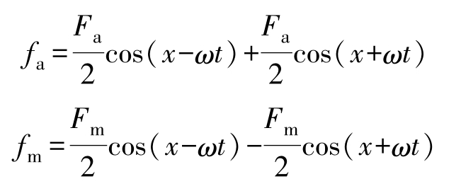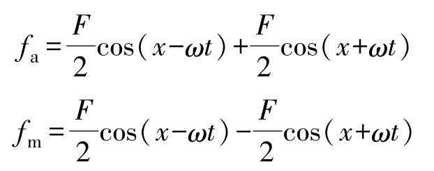 由于 F a1 ≠ F m1 ,故合成磁动势中既有cos( x-ωt )项,又有cos( x + ωt )项。即基波合成磁动势中,既有正向旋转的圆形旋转磁动势,又有反向旋转的圆形旋转磁动势,且转速均为基波旋转磁场的同步转速 n 1 。