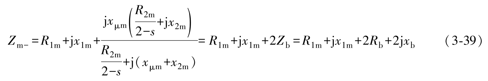 2.单相绕组异步电动机的等效电路 单相电阻起动和电容起动异步电动机,在起动后转子转速上升到75%~85%的同步转速时,起动开关自行将起动绕组断开,只留下一个工作绕组单独进行工作,等效电路如图3-18所示,变换后如图3-19所示。