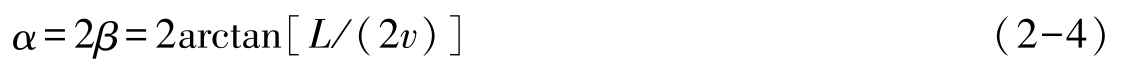 如图2-10所示,视场角(Field of View, FOV)就是整个系统能够观察的物体的尺寸范围,进一步可以分为水平视场和垂直视场,也就是芯片上能够成像对应的实际物体大小,定义为FOV= L / m ,其中, L 是芯片的高或者宽, m 是放大率,定义为 m = v / u , v 是相距, u 是物距,FOV即是相应方向的物体大小。当然,FOV也可以表示成镜头对视野的高度和宽度的张角,即视场角 α ,定义为