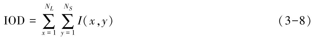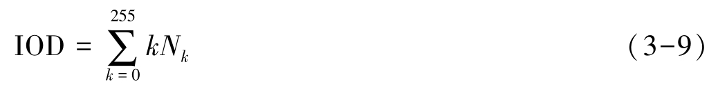 某些情况下,综合光密度是图像质量中一个很有用的度量,利用直方图可直接计算出综合光密度值。综合光密度用IOD来表示,以二维数字图像为例,则综合光密度为