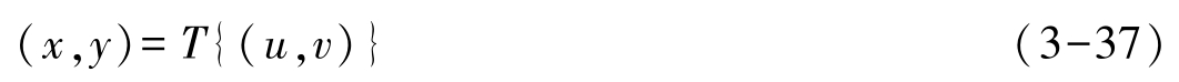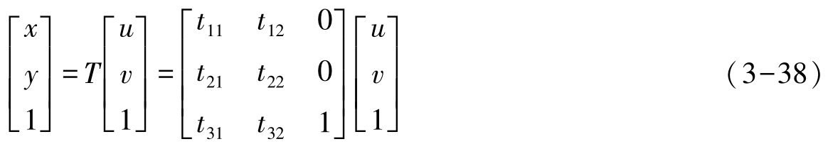 式中,( u , v )是原图像中像素的坐标,( x , y )是变换后图像中像素的坐标。通常,采用齐次坐标对图像几何变换进行统一表示:
