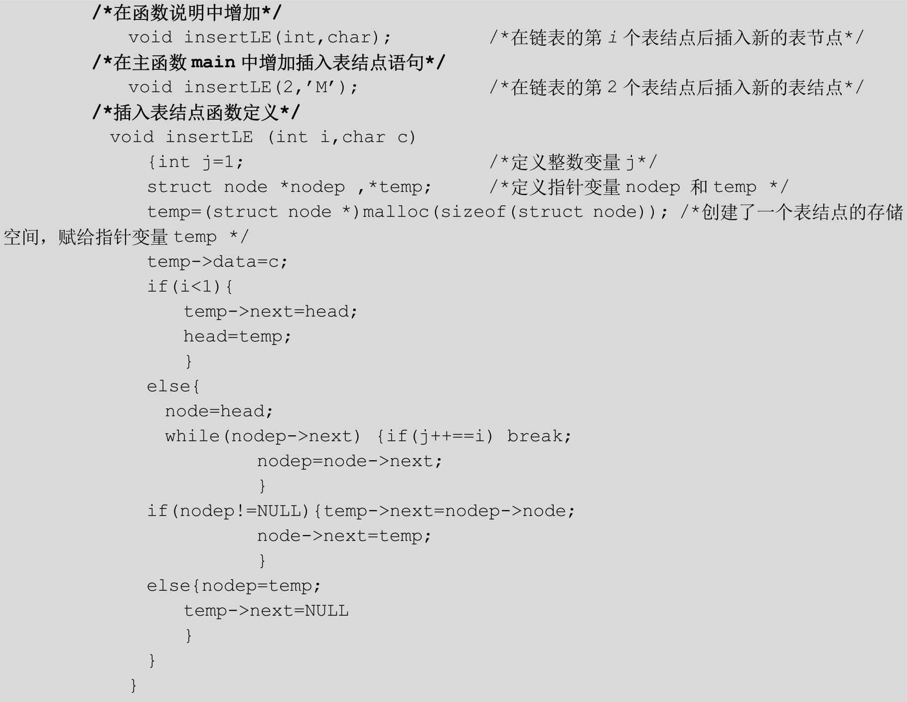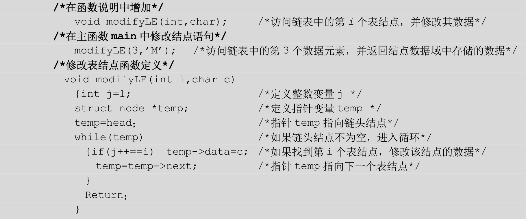 将第i个数据元素的值改为M。首先找到该结点,然后修改这个结点的数据域。利用C语言编写的处理程序如下: