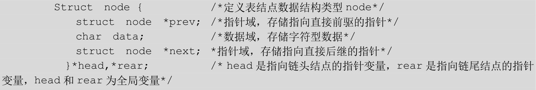 在C语言编写的处理程序中,双向链表的表结点结构定义如下: