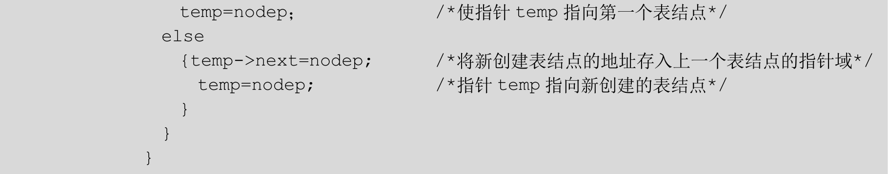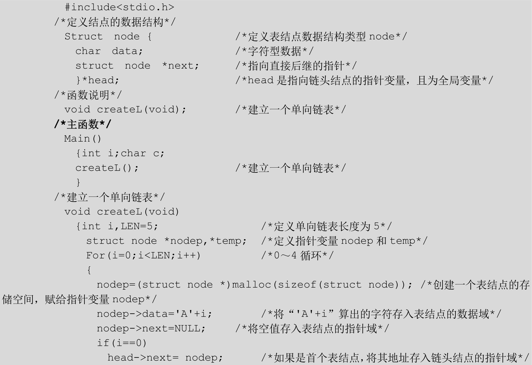 2)定义链头结点和链尾结点结构,本例中与表结点结构相同。