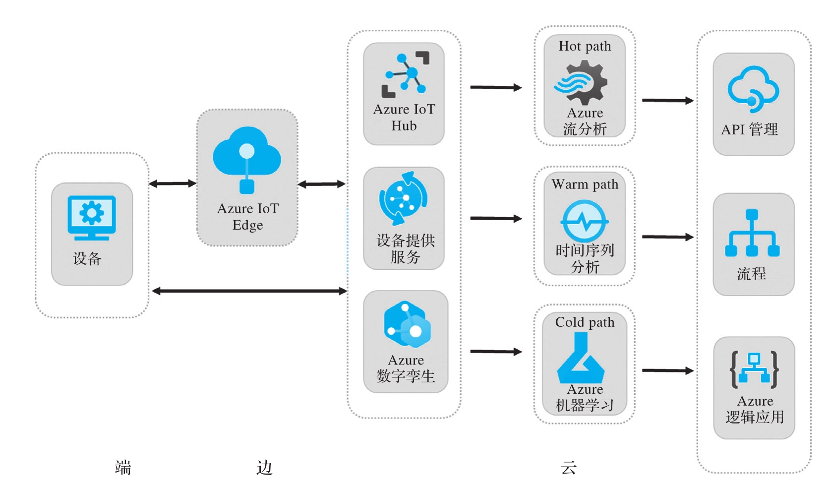 随着AI的发展,AI与物联网在实际应用中落地融合,原有的物联网平台开始向智能物联网方向发展。本节以微软Azure IoT和阿里云IoT为例,分析体系架构、组成以及与AI结合的方式。