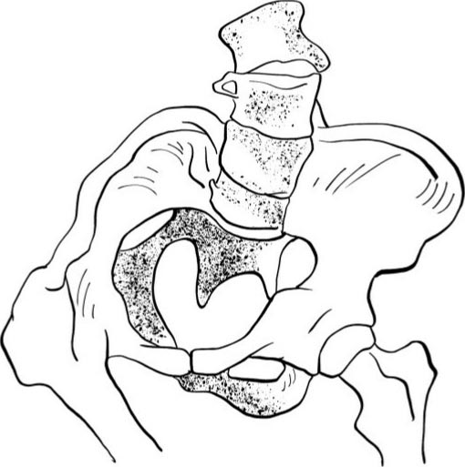 髋关节炎、小儿麻痹症下肢瘫痪萎缩、膝或踝关节病变、下肢骨折等,如在发育成熟前即已发病可引起跛行,步行时因患肢缩短或病痛不能着地,致使体重全部由健侧承担,从而形成歪斜骨盆(图2.37)。如在成年后发病不再引起骨盆歪斜。疑有先天性髋关节脱位者,为避免日后形成歪斜骨盆,需尽早由骨科医生检查,明确诊断、及时复位。