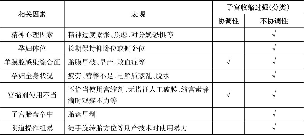 多因精神紧张、过度疲劳、不适当使用缩宫素或经阴道的宫腔操作所致。头盆不称是诱因之一。