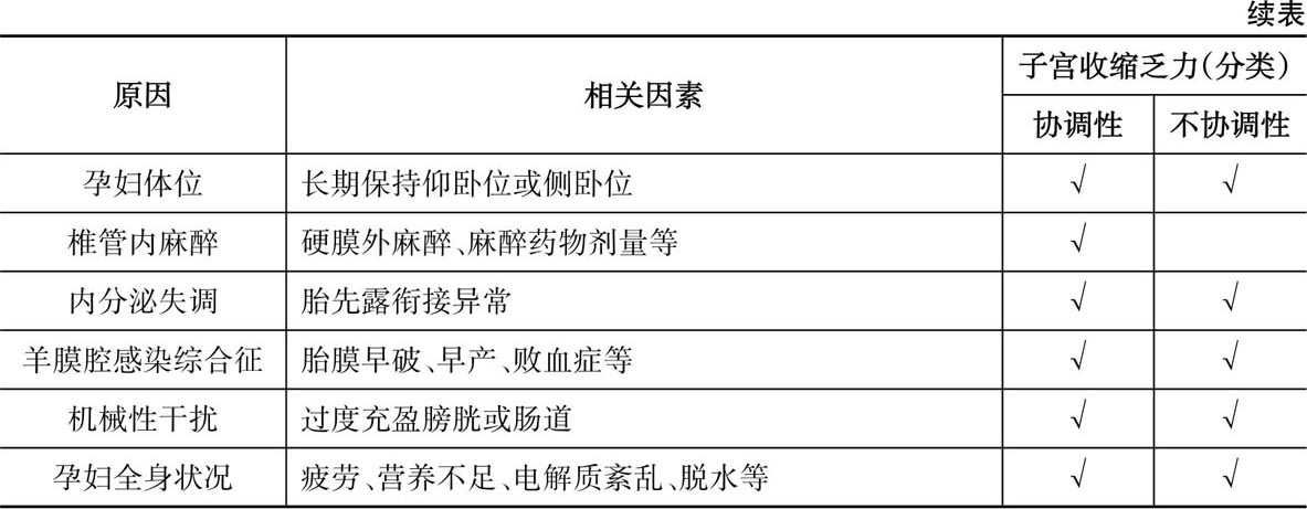孕妇疲劳、营养不足、电解质紊乱、脱水等均可造成子宫收缩乏力。