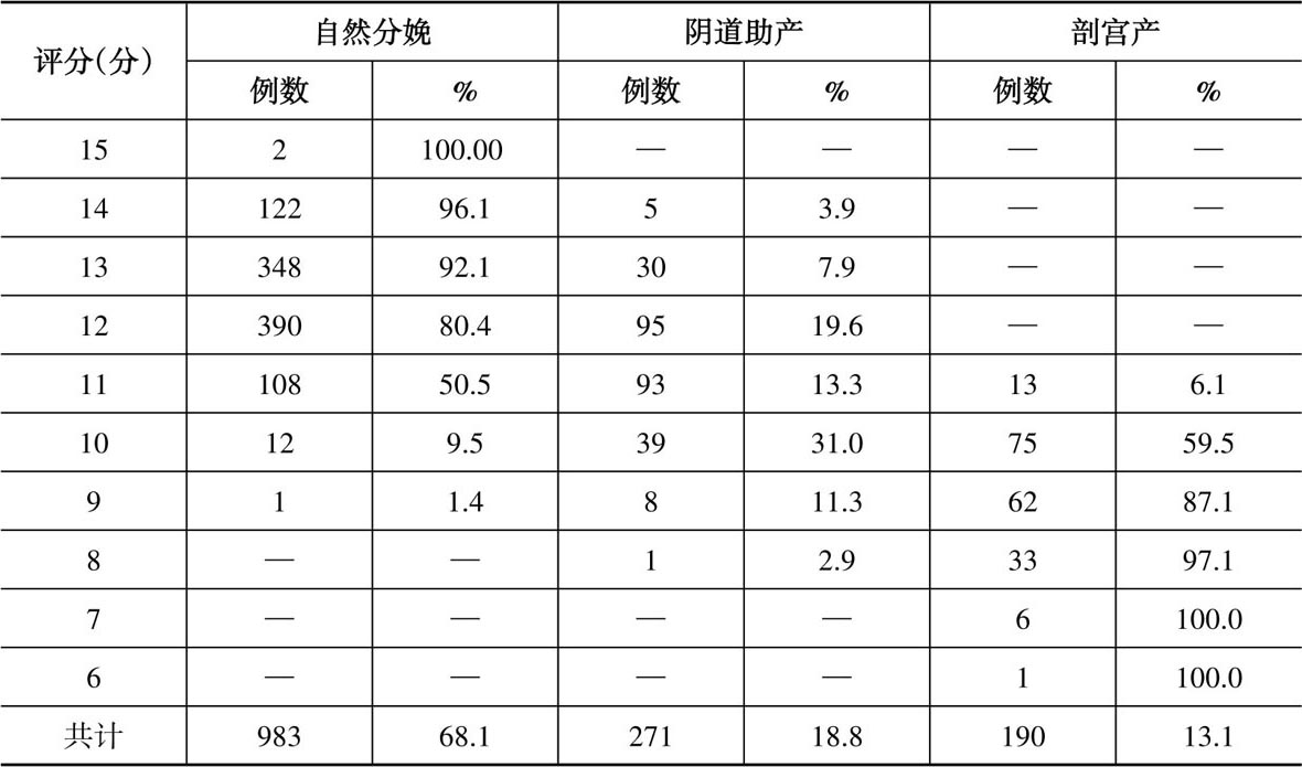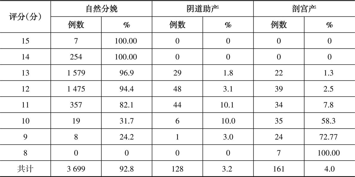 表7.3 头位分娩方式及评分(1975—1977年数据)