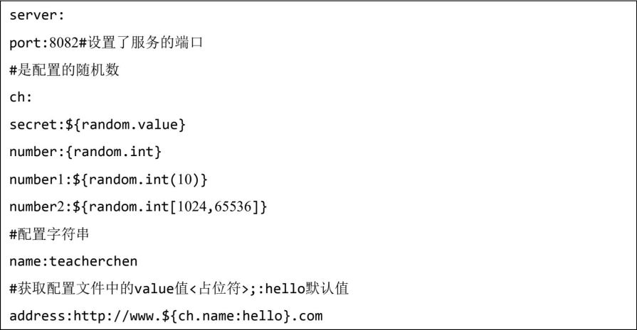SpringBoot支持占位符随机数和配置的值对象等等,随机数和配置的值对象的简单用法如下,application.YAML配置文件如下所示: