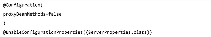 自动配置类上必须使用@Configuration注解,告诉Spring,此类是用于配置。此类上可以使用@EnableConfigurationProperties启动映射对应配置对象。如下所示: