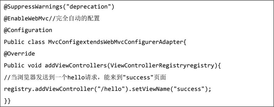 如果您想完全控制SpringMVC,可以添加自己的@Configuration注释并加上@EnableWebMvc。没有SpringMVC的自动配置,SpringMVC的自动配置都失效,代码如下所示。