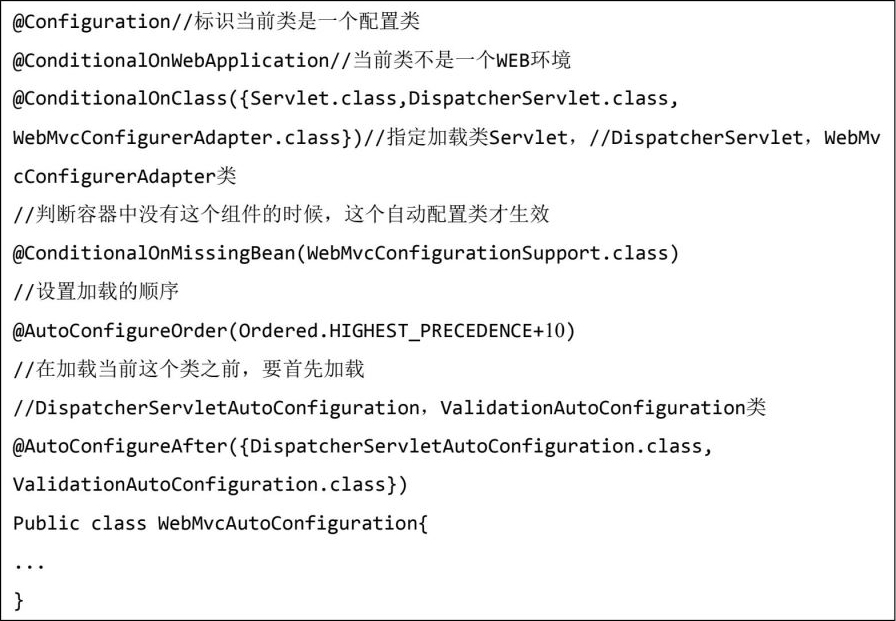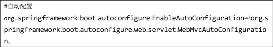 在SpringBoot中引入了spring-boot-starter-web依赖,并完成了DispatcherServlet的自动配置之后,便会通过WebMvcAutoConfiguration对SpringMVC的自动配置。与DispatcherServletAutoConfiguration一样,首先会在spring-boot-autoconfigure包中的META-INF/spring.factories配置文件中配置注册类WebMvcAutoConfiguration,源代码如下所示。