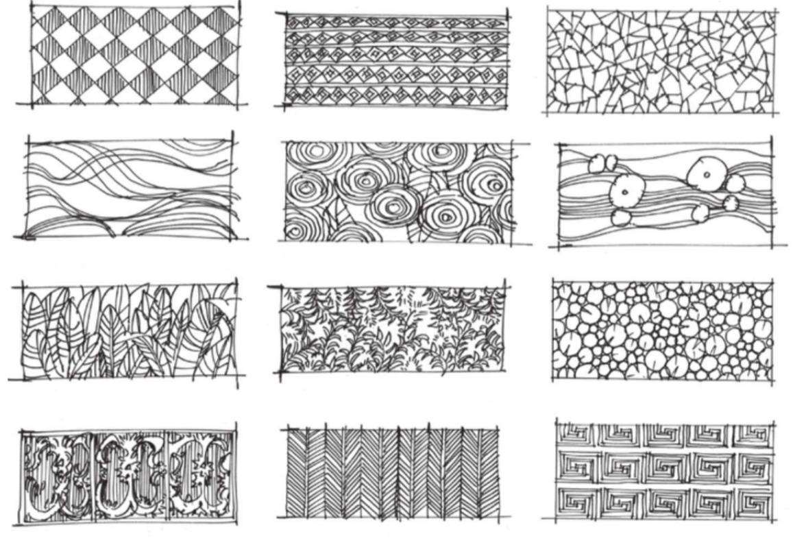 (3)材质肌理图案的练习如图1.11所示。