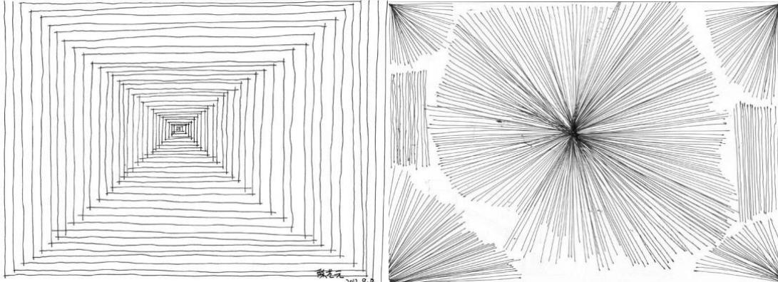 线条不仅仅能表现出物体的特征,还能反映出绘画者的情绪与性格。如写字一样,不同的线条形态能给人不同的感受,对线条的感知很容易引起心理联想,激起相应的感情世界。线条是有性格的,有生命力的,对于一张设计草图来说,能反映出自由、严谨、直率、奔放等特征。
