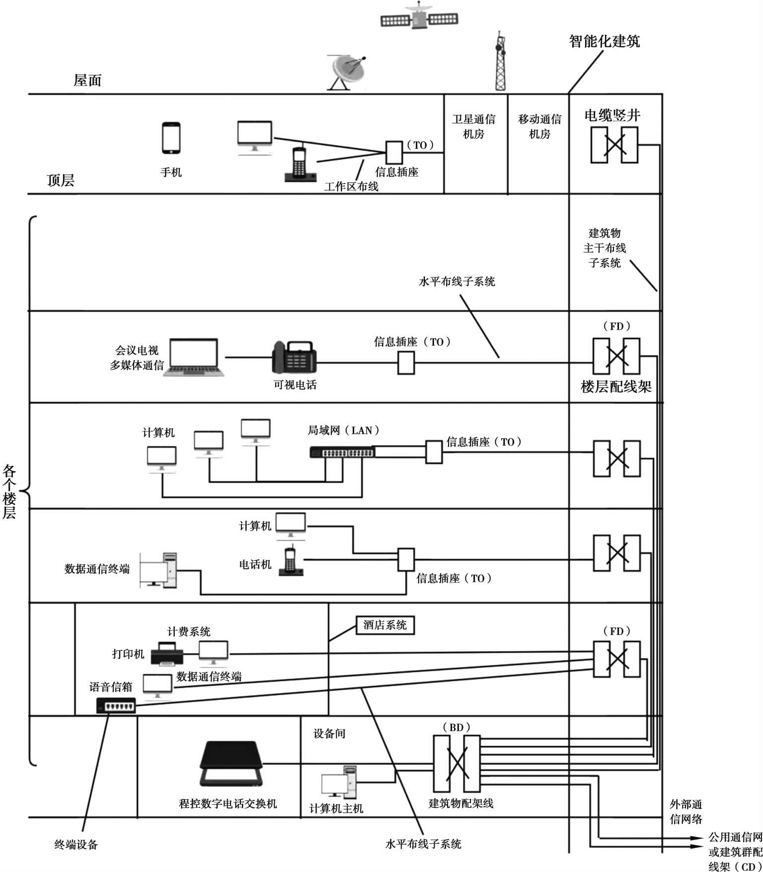 图2.19 综合布线在智能建筑中的典型应用示意图