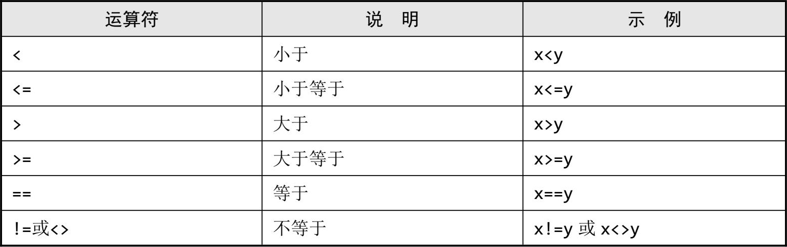 “==”:等于符号,判断两个操作对象是否相等,例如:x==y,表示判断x和y的值是否相等。