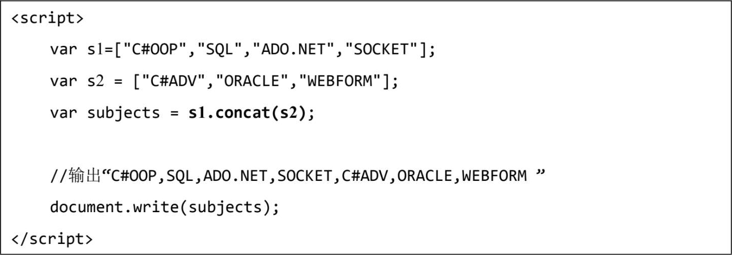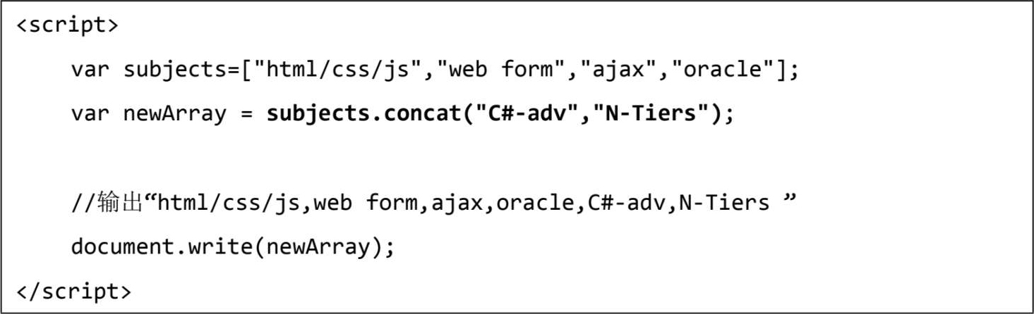 在下例中,我们把concat()中的参数连接到数组subjects中,返回新的数组对象。