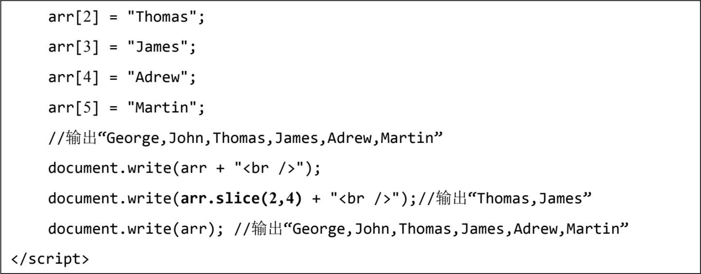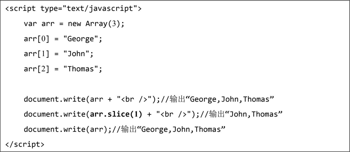 slice()方法返回一个新的数组,包含从start到end(不包括该元素)的arrayObject中的元素。