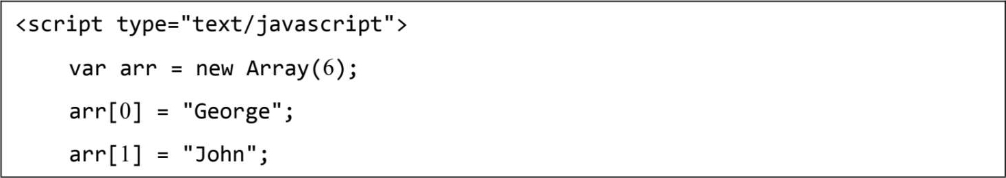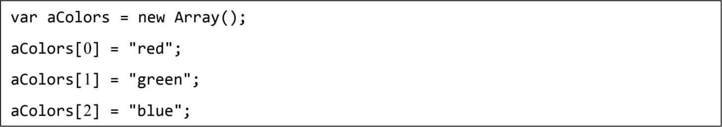 这段代码中,开始创建了一个数组,并没有指定长度,此时它不包含任何元素,后三行使用索引号为数组增加了 3 个元素。